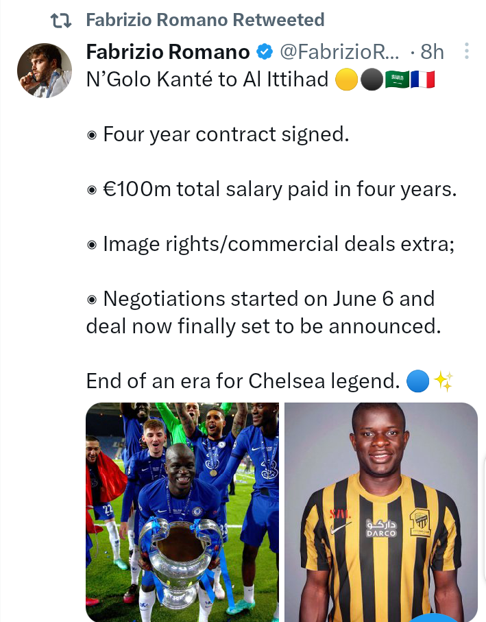 Chelsea’s legend N’golo Kante is set to leave Chelsea this window. This would hurt a lot of Chelsea fans, especially me. Personally, am a huge fan of Kante. He is always smiling. A guy with a small stature but a very big heart.